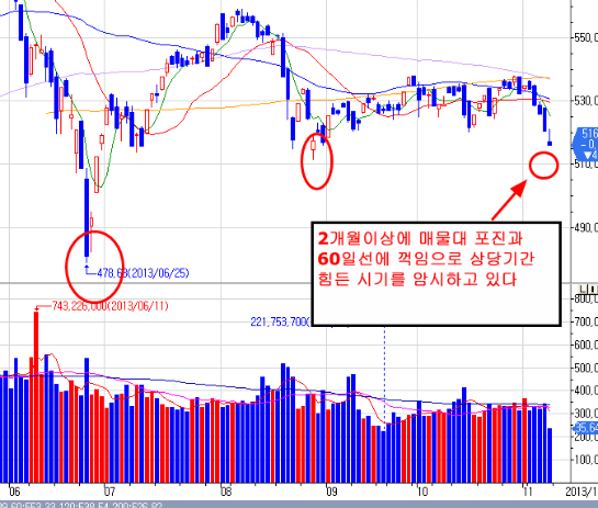 로 일관하고 있다. 이는 수년간에 지루한 박스권에서 고점에 물린 투자자와 저점에 편입한 물량