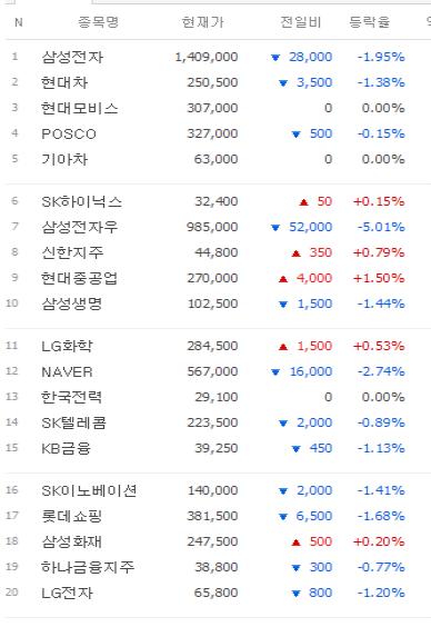시총 상위 종목들을 들어올리지 않고서는 절대 강한 반등은 나올수 없다.
