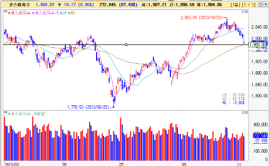 주말을 앞둔 8일 코스피 지수는 마침내 2000선이 무너지며 두 달만에 최저치를 기록해습니다. 전날 미국경제지표가 양호하게 나오면서 미국 양적완화 축소 우려가 번졌기 때문으로 볼 수 있겠습니다.