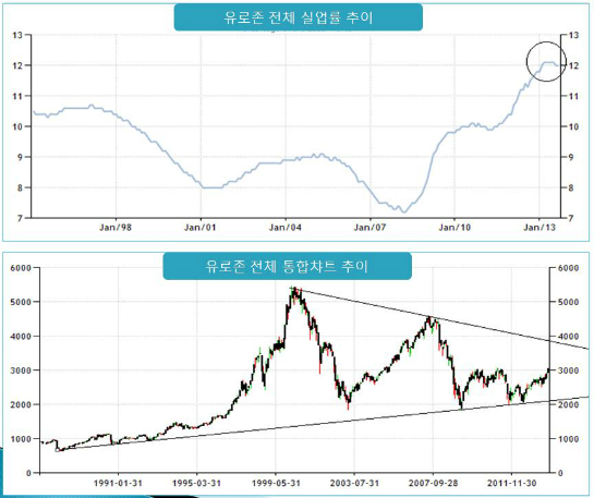 유로존 PMI 지표와 GDP 성장률이 개선세를 나타내는 가운데 2년간 증가했던 실업률의 추이가 정점에 도달하는 모습을 나타내고 있다. 미국의 실업률 증가세가 꺽이며 미국 증시가 역사적 신고가를 지속 갱신하듯 유로존 실업률이 정점에서 증가세 둔화가 추가 확인된다면 유럽 증시는 추가적인 상승을 궁극적으로 그려나갈 것이다.