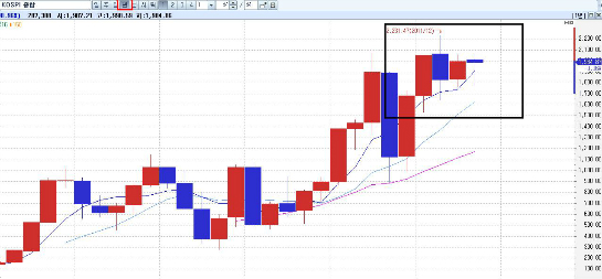 셋째, 주도주의 부재 상황 발생이다. 지수 상승을 주도하던 조선주가 조정에 들어가며 이를 대체할 주도주의 부재 현상이 나타났고 삼성전자의 경우 가치 상승에 의한 반등시도보다 배당 투자에 의존하는 한계점을 벗어나지 못하며 시장의 대체안이 되지 못한 것으로 풀이된다. 삼성전자의 한계는 모처럼 반등 시도하던 스마트폰 부품주의 발목을 잡은 현상까지 나타났다.