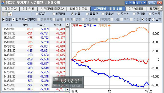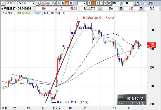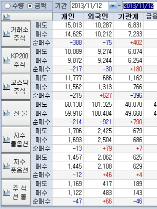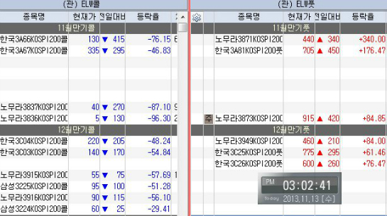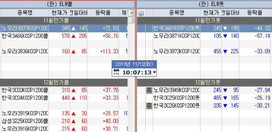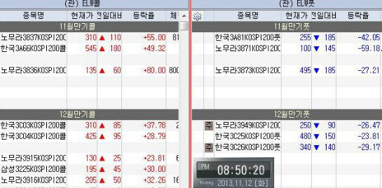 2013년 11월 12일 옵션 만기 2일전 화요일의 파생 선물옵션,ELW 움직임