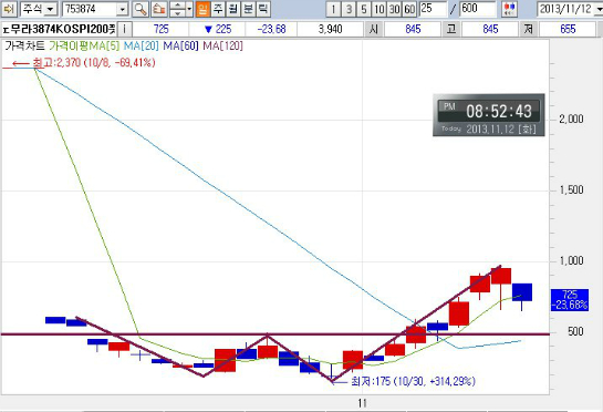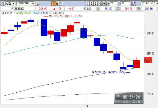 2013년 11월 12일은 매월 2번째(2째주가 아닌 2번째)목요일 옵션 만기일 2일전입니다.