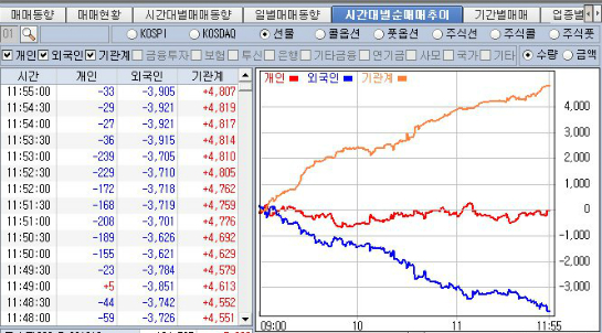 외국인의 선물 매도에 의한 지수 급락