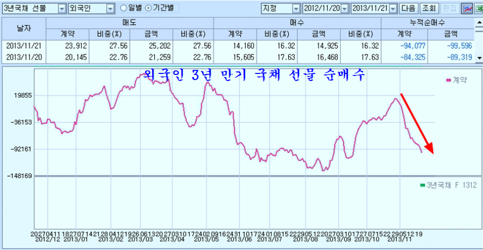 이런 이유 때문에 외국인은 7월 이후 14조 가까운 주식을 사들인 대신, 채권 선물 시장에서는 국채선물을 연일 매도하며 국채 매도를 예약해 두고 있다. 이런 자산 운용의 원리를 아는지 모르는지 국내 기관과 개인들은 주식을 팔아 현금을 늘리거나 공사채형 수익증권을 사고 있다. 시류에 역행하는 투자이다.