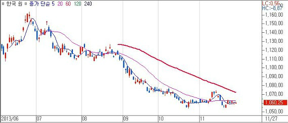 반면 시장은 여전히 양적완화 축소에 대해 우려의 시선을 보내고는 있지만 며칠전 뉴욕 증시에서는 의미있는 반등국면이 나타났는데 그것은 12월 출구전략 시기에 대한 코멘트에도 불구 뉴욕시장이 상승마감하며 양적완화 축소에 대한 우려를 불식시키는 모습이다