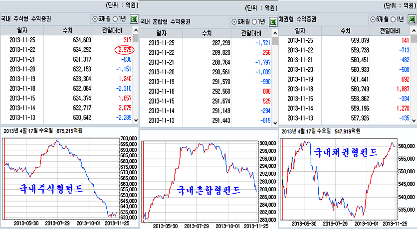 한편, 주식형 펀드의 환매자금이 이동하면서 증가하던 채권형 수익증권이 증가를 멈추고 약세로 전환된 점도 이러한 수급의 변화를 나타낸다.