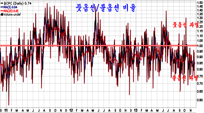 다만, 우리나라 뿐 아니라 세계 증시가 상승을 앞두고 파생상품 시장에서 콜옵션 베팅이 증가하면서 파생상품 시장에서 나타나는 이해가 상승을 지연시키는 마찰 요인으로 작용하고 있다. 뉴욕시장의 풋옵션/콜옵션 비율은 장기간 콜옵션 과열 국면에 머물고 있다.