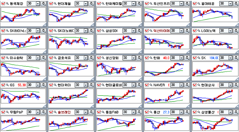 특히 기업의 설비투자 주기인 쥬글라 사이클이 2013년 회복을 시작한다는 점에서 단기 변동에서 눈을 들어 일봉의 변동을 무시하고 월봉의 추세를 따라 전략을 가져가면 좋다. 그 전략이란 향후 4~5년의 경기 확장기를 겨양하여 경기 민감주를 사서 보유하는 것이다.