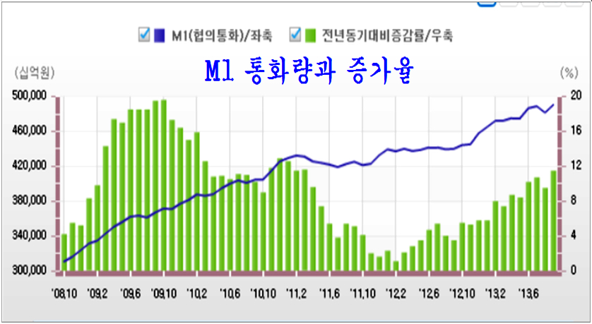 통화 부족과 함께 부동산의 거래가 줄고, 주식의 거래가 줄고, 내수 시장이 위축되면서 심지어 세금까지 덜 걷히는 극심한 돈 가뭄에 시달려왔다. 그러나 올 들어 통화 공급이 지속적으로 증가 추세를 보이고 있고 현재는 전년비 11%를 넘어섬으로써 3%의 물가상승을 하고도 7% 이상 성장을 할 수 있는 넉넉한 통화 공급이 되고 있다.