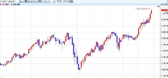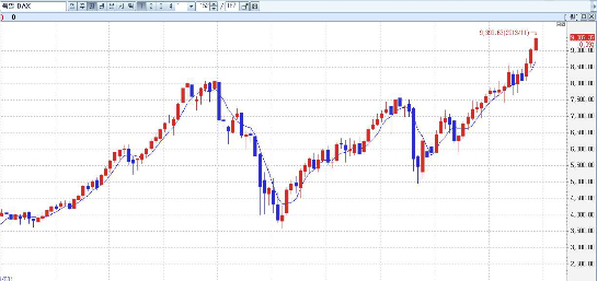 유로존의 리더인 독일 증시가 역사적 신고가를 갱신하며 날라가고 있는 이유가 바로 이것이다. 유로존이 결성된 이후 경제적으로 가장 큰 수혜는 당연히 독일였다. 유로존이라는 울타리로 엮은후 독일의 생산품은 자동적으로 유로존 여타 국가들로 팔려나가는 발판이 마련되었기 때문이다. 유로존 위기를 극복하려 부단한 노력을 독일이 보인점도 독일 경제와 직결되었기 때문였다. 바꿔말하면 독일 증시의 신고가 갱신이 의미하는게 바로 유로존 경기의 지속된 회복을 암시한다는 의미다.