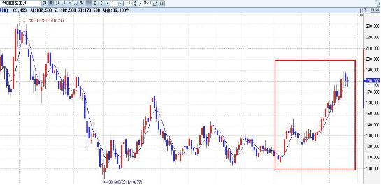 이는 실적악화를 지난해까지의 주가 하락으로 선반영했고 올해를 최악으로 내년에는 적자폭 감소, 내후년에는 흑자 전환으로 턴어라운드가 전망되기 때문이다. 선진국 경기의 회복과 PC선 수주 강세 등이 근거로 제시되고 있다. 이에 따라 주가의 선행적 반영이 나타나고 있기 때문에 올해 최악의 적자 실적임에도 현대미포조선의 주가가 오히려 조선업종을 주도하며 상승할 수가 있었던 것이다.