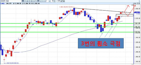 이제는 올해의 마지막달인 12월장이 시작된다. 그대로 전고점을 넘기는 상승이 나타날 수도 있고 12월 12일의 쿼터러블위칭데이 이전에 한번 더 변동성을 유발할 수도 있지만 결론적으로는 상승에 촛점을 맞춰야 한다. 만기전 흔들기가 나타나도 이 경우는 본격 상승전 마지막 흔들기로 봐야한다. 이제 우리앞에는 큰 기회가 도사리고 있고 그 타이밍에 접근되고 있다.