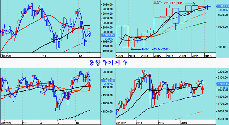그러나 종합주가지수는 돌파된 저항선이 지지로 바뀐 가격권에 머물러 제한된 채 상승을 준비하는 구간이다. 따라서 업종 대표 우량주군을 중심으로 매수 전략을 계속 유지할 때이다.