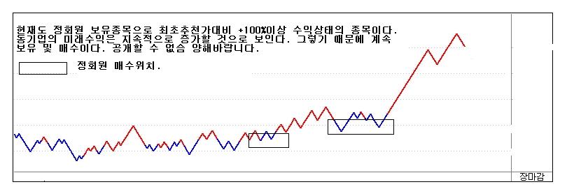 아래의 종목 역시 현 정회원 모두 들고 있는 종목이며 최초추천가대비 +100%이상 수익상태의 종목이다. 조정을 거칠지라도 계속 상승할 종목이다.