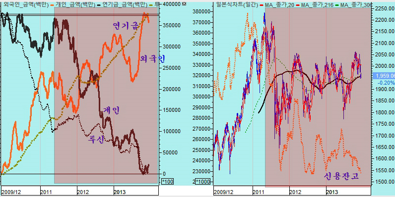 이렇게 변동이 축소되었기 때문에 변동을 이용하여 매매차익을 구하는 개인투자자들이 수익을 내기 어려워지면서 시장을 이탈하고 있다. 그 결과 주식은 직접 투자를 하거나 투신에 맡겨 간접투자를 하는 개인이 주식을 팔고 외국인과 연기금이 주식을 사는 손바꿈이 활발하다.