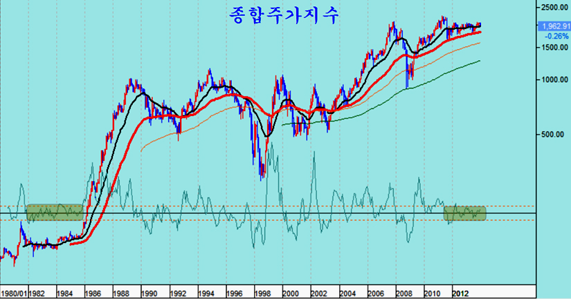 1980년 이후 이처럼 전년 동기비 주가 상승률이 10% 이내로 축소된 지루한 박스권 장세로 움직인 시기는 1982~1984년의 시기가 있을 뿐 필자가 증시를 분석한 지난 14년에는 한번도 없던 현상이다.