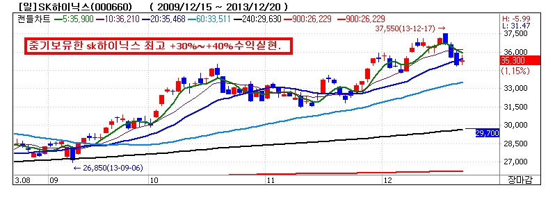 위는 sk하이닉스이다. 중국공장 화재건으로 모두 확신이 없어 등락거리는 시점에 회사의 전망과 반도체업황등을 분석하여 주가는 정배열로 돌아설 것을 확신하고 정회원 모두 약간의 비중을 실어 강하게 매수하여 흔들림에도 흔들림없이 보유하여 +30%~+40% 수익을 기록한 종목이다.