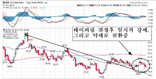 테이퍼링을 결정했지만 달러인덱스는 그리 강하지 않다.