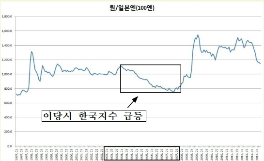 지금과 같은 엔화약세 현상은 과거 2003년~2007년까지 있었다.