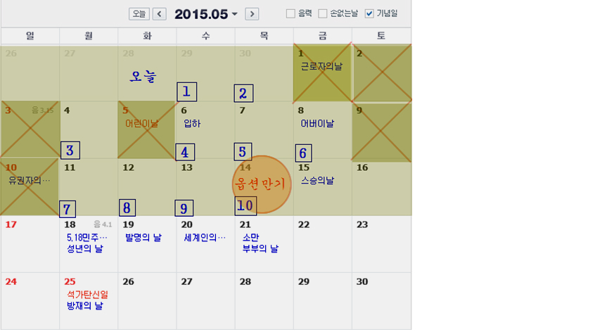 5월 14일 옵션 만기일을 달력일수로 16일 남겼지만, 거래일수로는 10일이 남았다. 휴일이 많아 매수 포지션에 불리한 개인은 매수 외국인과 기관은 매도의 포지션 대치가 진행되고 있다.