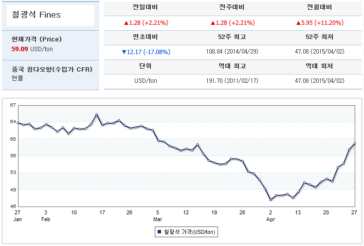최근 중국에서 중국 내수와 관련하여 중국열연코일 가격이 3일째 상승이 이어지고 있다고 한다. 3일 연속 상승은 적삼병으로 추세 전환 가능성을 주는 의미가 있다. 중국의 열연코일 가격과 철근가격이 오르면서 세계 금속가격 움직임도 활발하다.