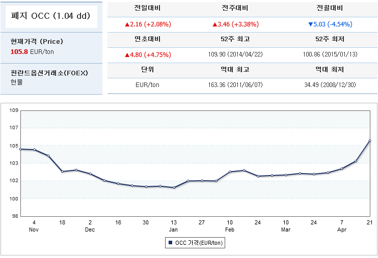 한편, 제지의 원료인 폐지가격이 급등하면서 제지 업황도 빠르게 호전되고 있는 중이다.