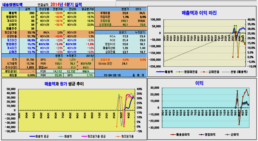 물론 기업이 흑자가 나고 재무 상태가 건실하다고 해도 이렇듯 주가가 돌별할 수 있다는 점에서 레버리지 투자를 주의해야 한다. 이 기업은 지난해 4분기 매출액 280억에 이익이 38억에 불과했다. 연간으로 따져도 120억의 이익이 나는 기업으로 주가는 이익의 15배인 3600억원을 넘으면 과도하지만, 이를 상관하지 않고 시가총액이 1조 5000억원을 넘었다는 점에서 무분별한 투기가 빚은 결과이다.