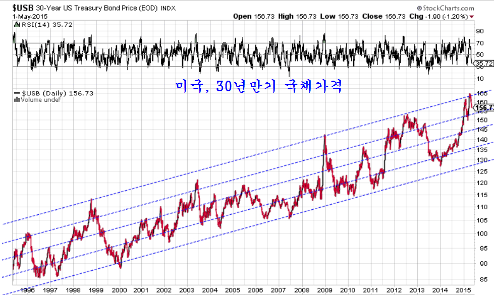 쌍봉 천정을 형성한 후 지지권을 이탈하고 있는 핌코의 채권 토탈리턴펀드의 움직임을 보면 향후 자금의 이동이 보다 가파르게 전개될 가능성을 준다. 글로벌 증시의 유동성장세를 의미한다.