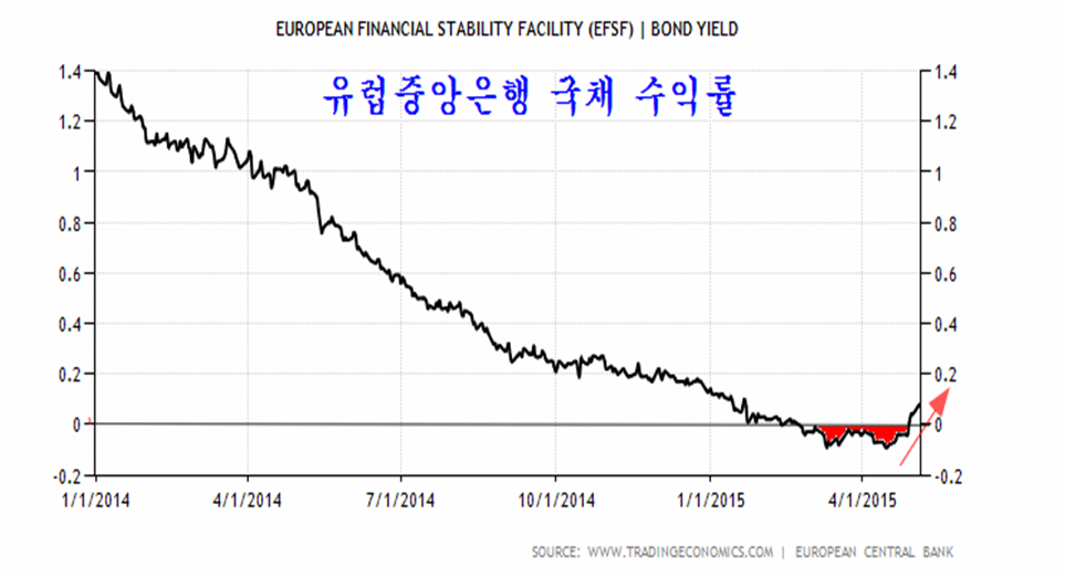 특히 유럽 중앙은행 채권은 지난해 하반기 마이너스 권에서 움직였지만 최근 상승이 시작되어 플러스 전환하였고 빠르게 상승하고 있다. 금리가 마이너스라는 것은 자금시장에서 자금을 빌려갈 수요가 부족하거나, 지나친 리스크 회피 심리로 금융기관이 자금을 빌려주지 않기 때문에 나타나는 현상이다.