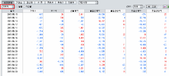 4.22일 -5.4%까지 조정을 받으면서 주가 하락의 원인은 외국인 기관 매도세 였다.