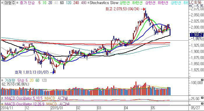 코스피를 이끌고 있는 대형주의 흐름은 충격이 불가피하다 할수 있다