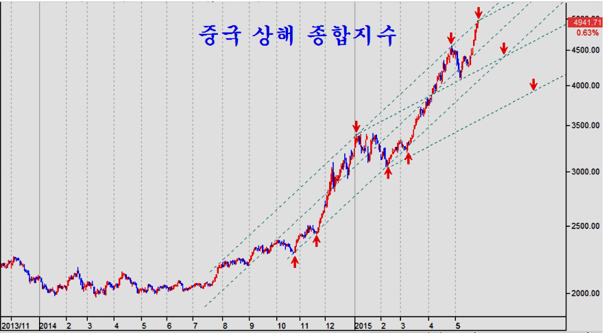 그간 세계 증시의 지루한 조정 속에서도 중국 상해 종합주가지수만은 홀로 대단한 랠리가 이어졌다. 특히 5월 옵션 만기 이후에는 세계 증시가 조정을 거치는데 아랑곳하지 하지 않고 대단한 급등이 이어지면서 4,900선을 돌파하고 있다.