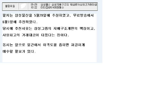 필자가 5월29일 정회원들에게 추천하였고, 무료방송에서 추천드렸던 삼성물산은 메리스라는 강력한 바이러스를 뚫고
