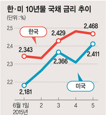 *한국괴 미국의 10년물 국고채 금리가 역전될 위기에 처해있는 점도 부담이다.