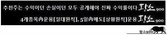 운영방식 : 4종목內운영[절대원칙],5일內매도[상황원칙],30종목추천後결산[복리원칙]