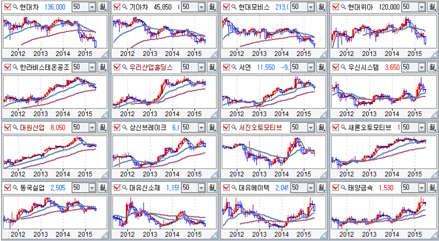 자동차 업종 주요 기업 월봉추이