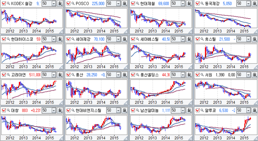 철강 업종 주요 기업 월봉추이