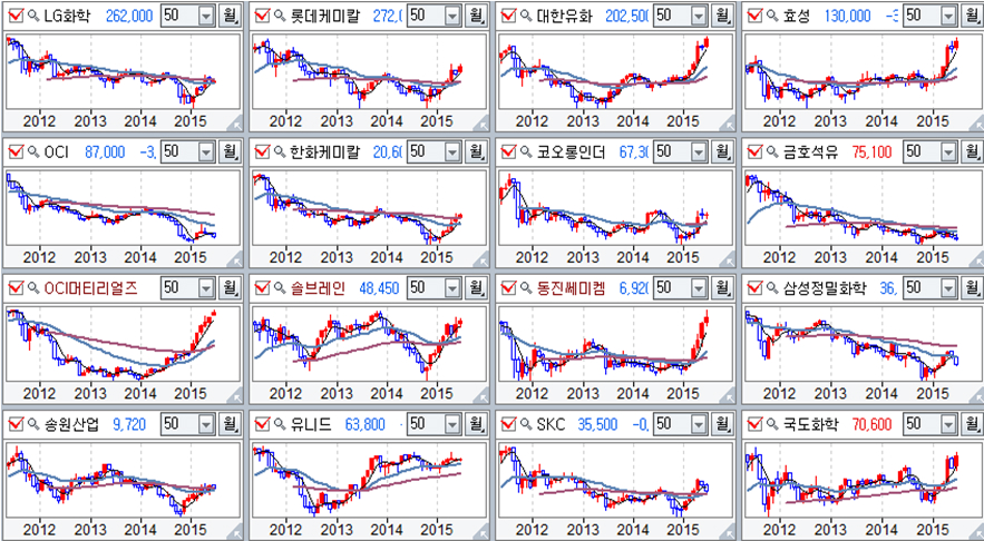 화학 업종 주요 기업 월봉 추이