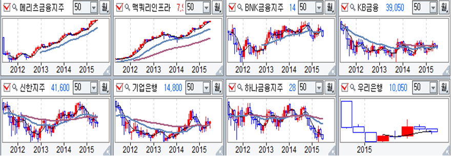 은행 업종 주요 기업 월봉추이