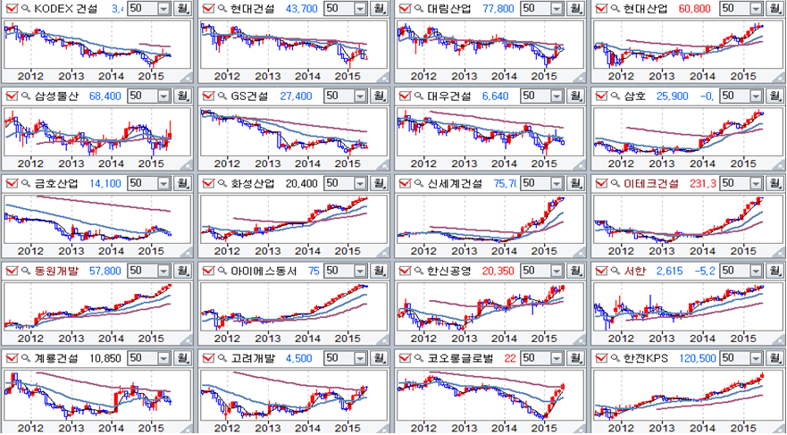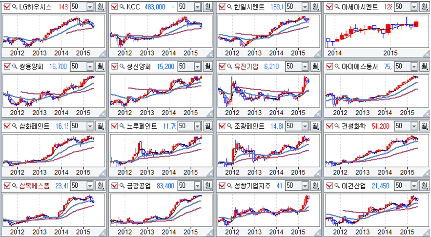 건축자재 업종 주요 기업 월봉추이