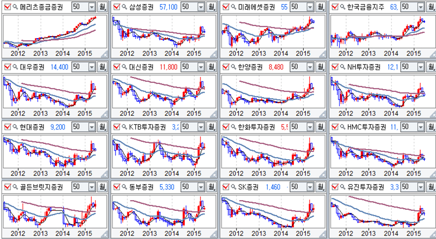 증권업종 주요 기업 월봉추이