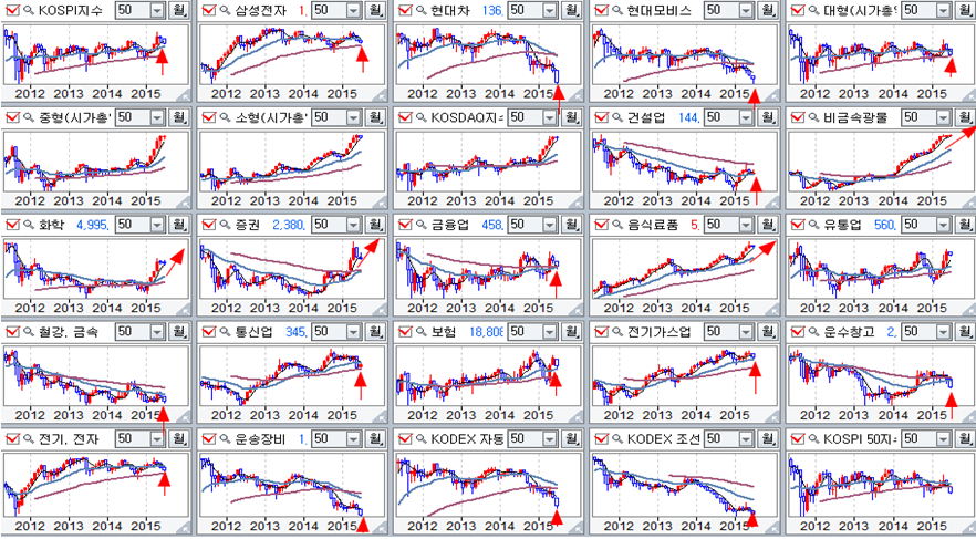 업종별 주가 월봉 추이