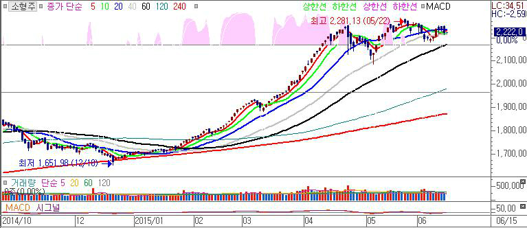 현재의 자리에서 대형주의 추가하락은 불가피할것으로 보여지고 소형주의 조정은 아직 남은것으로 보여진다