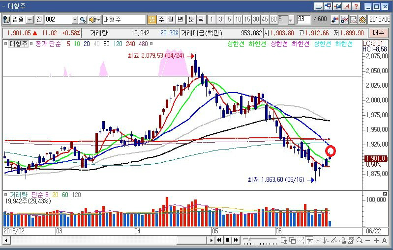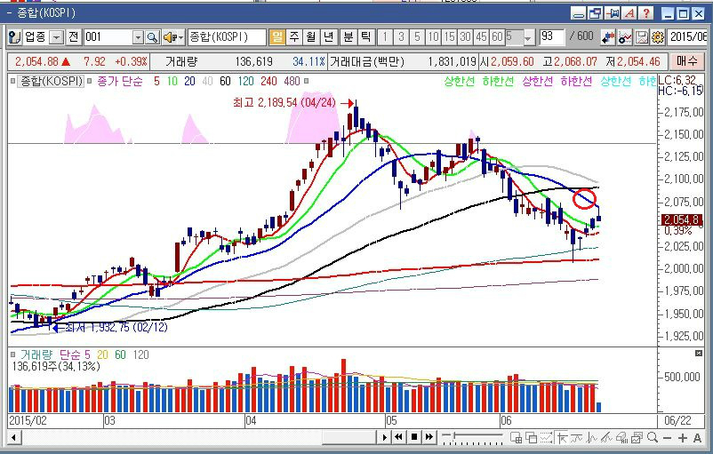 대형주의 경우는 상단에 240일선 마저 존재하고 있어 단지 하락추세에서 과도하면 반등국면 정도로만 인식함이 옳다