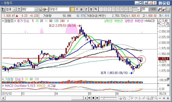 이미 조정 추세를 넘어버린 상황이므로 향후로도 하락조정은 그야말로 상승추세속의 하락조정이라고 보고 적극적 매수로 대응함이 옳다