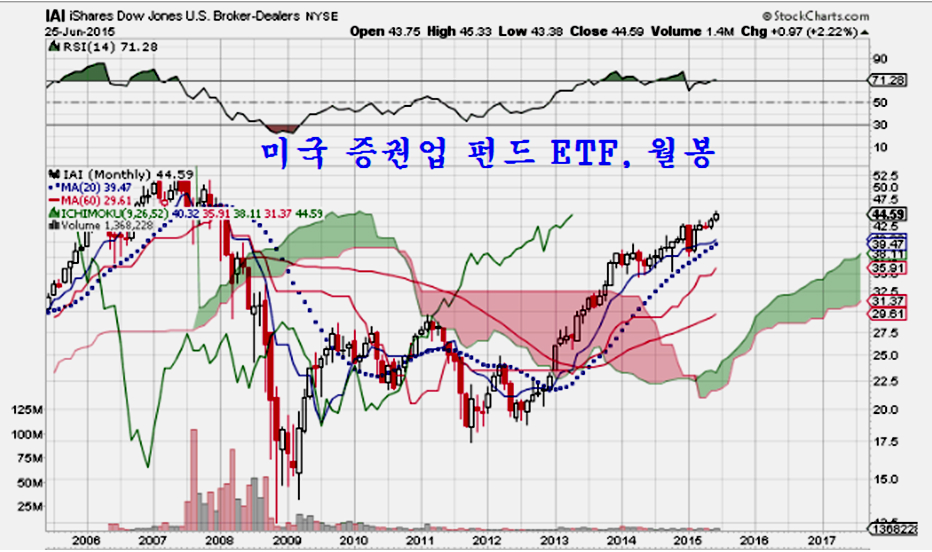 주택건설업 ITB나 은행업종 KBE은 2023년의 17년 주기 부동산 경기 사이클이 끝날 때까지 보유가 유망한 업종 펀드이다. 뉴욕에서 직접 살 수 있으므로 한국 증시가 미덥지 않은 경우 이런 펀드를 사서 보유하기만 해도 팔자가 바뀐다.