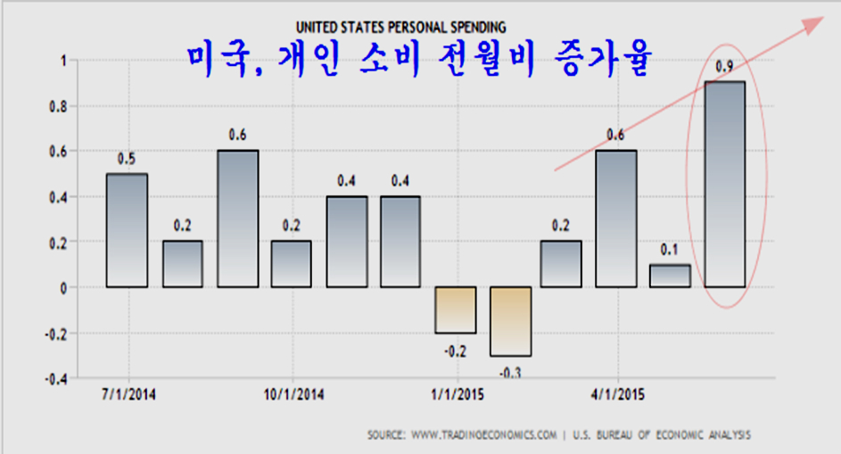 한편, 엊저녁 발표한 소비지출 역시 지난 1년의 침체를 벗어나 활발한 모습을 보여준다. 부동산 및 건설의 회복이 진행되므로 뒤이어 제조업의 회복이 이어질 시점이다.