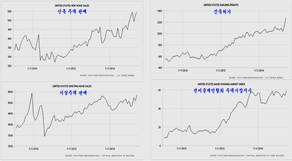 기존주택과 신축주택 판매가 빠른 속도로 개선되기 시작하고, 주택 신축을 위한 허가가 대단히 가파르게 치솟아 본격적인 주택 건설 경기를 예고한다. 여기에 전미 부동산 중개인 협회의 주택시장 체감지수도 빠른 회복을 보이고 있다. 2011년 시작된 1라운드 회복에 이어 2라운드의 주택 경기가 시작되고 있다.