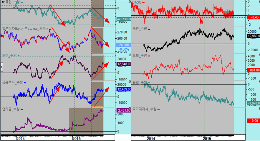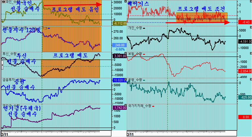 그러나 이러한 매도 국면이 거의 한계수준에 접근하는 만큼, 향후 매도했던 물량은 매수로 나오게 되며 이 때 대형주 주가를 하락시켰던 프로그램은 대형주 주가를 올리는 방향으로 작용하게 된다.